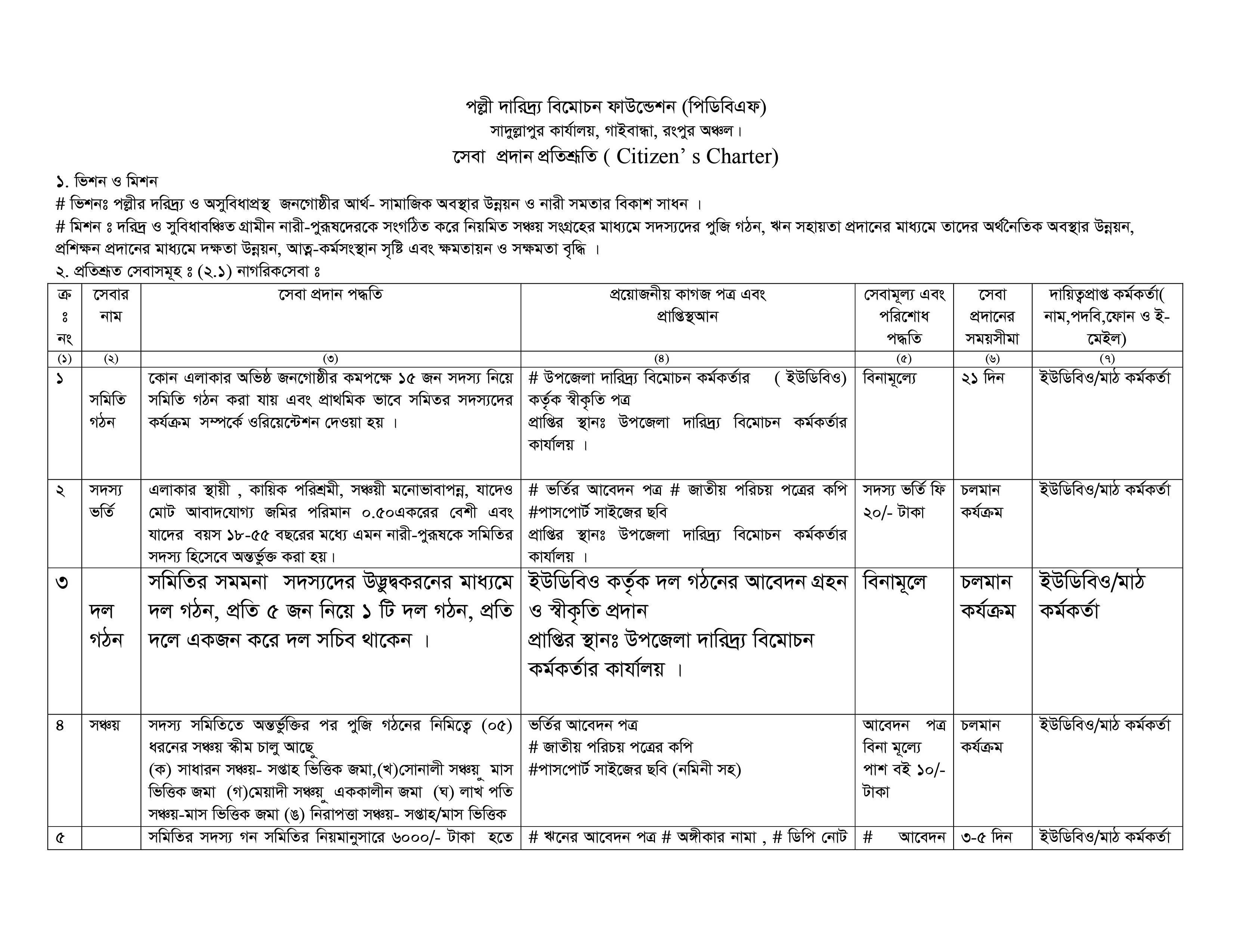 ৭। গ্রামীন জনগোষ্টীর দারিদ্র্য বিমোচন আত্নকর্মসংস্থান সৃষ্টির আয় বধন মুলক কর্মকন্ড ও আর্থ সামাজিক অবস্থার উন্নয়নের জন্য ঋণ সহায়তা প্রদান।